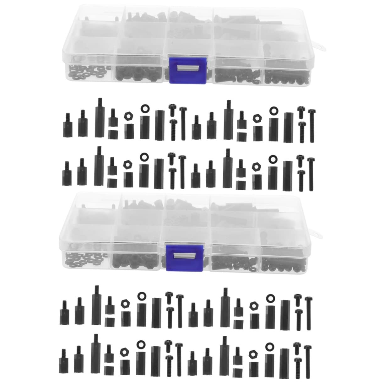 Package List 60 x spacers(6mm+6mm) 60 x spacers(10mm+6mm) 60 x spacers(15mm+6mm) 60 x spacers(20mm+6mm) 60 x spacers(6mm) 60 x spacers(10mm) 60 x spacers(15mm) 60 x spacers(20mm) 240 x nylon nuts 80 x nylon washers 80 x screws(6mm) 80 x screws(12mm) 80 x screws(20mm) Characteristics -Size:17.30X9.50X2.00cm/6.80X3.73X0.79in nylon nut kit -Material:Nylon assorted fastening nuts -Color:Black nylon head screw -Well-designed, with good stability and fastening, can much to your work nylon spacers. -The assortment come with nylon spacers, screws, nuts and stand-off, satisfy your demands very standoff. -Adopting nylon material, these head screws and nuts are , can withstand long servicing screws and nuts. -Strong and sturdy threaded design of the nylon spacer, very easy to use with peace of mind, not easy to skid threaded pillar spacers. -Applied for PCB and flight controller stack building, motion sensor mounting, board building, of multiple uses nylon nuts and washers kit.Goods Informationassorted screws and nuts Adopting for good durability and practicality, proper for many areas like PCB and flight controller stack building, can better satisfy your requirements.threaded pillar spacers Are of professional and convenient screw and nut kits? Our products can be your wonderful choice