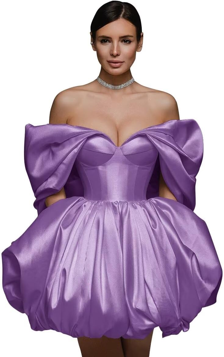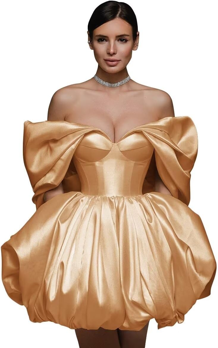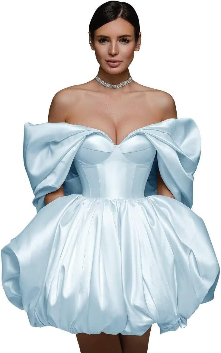 | Material Type | Off The Shoulder Short Wedding Dresses for Bride Pufffy Satin Bridal Dresses w/ Pockets Strapless Formal Ball Gowns |