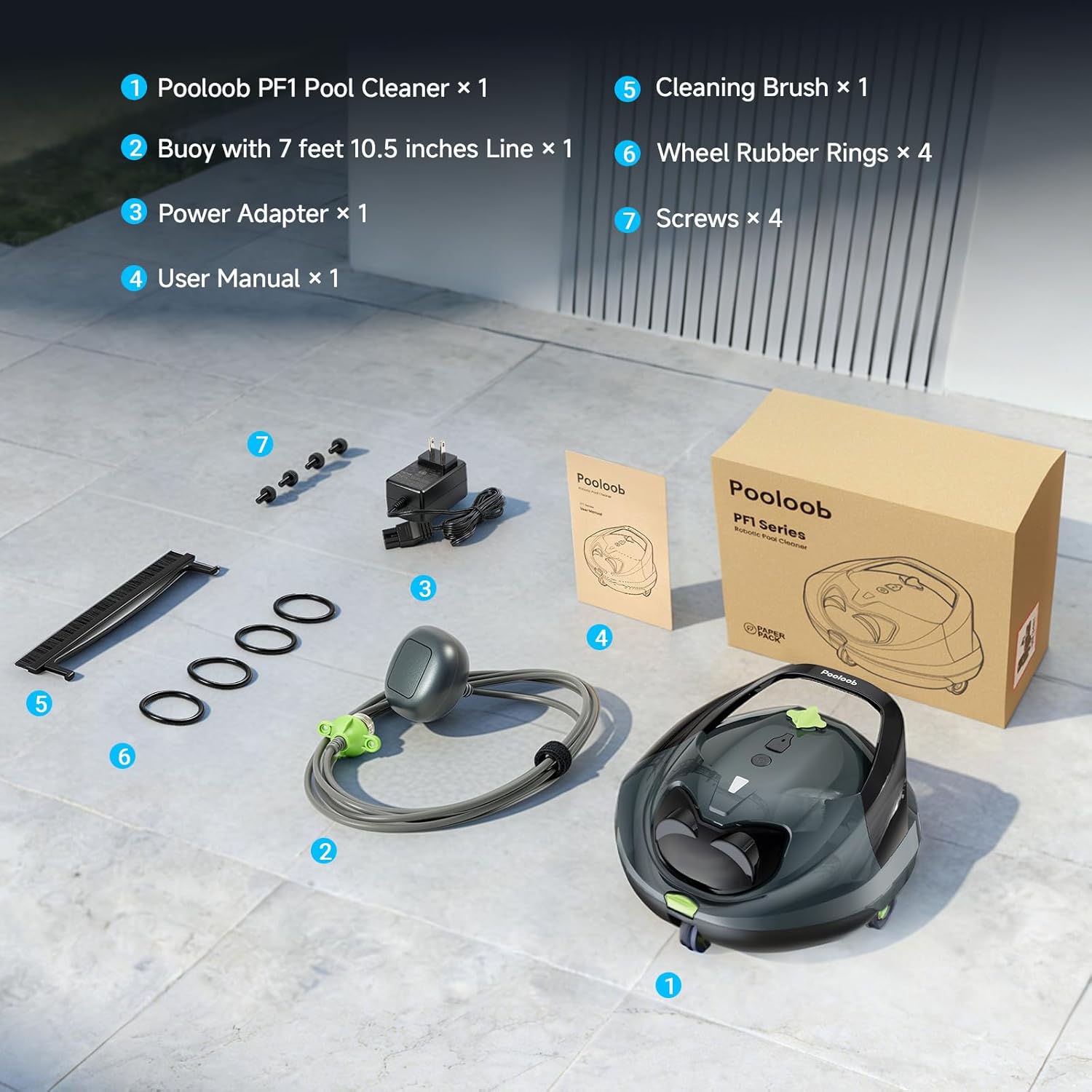 | Product Care Instructions | 1. Clean Filter for Performance: Rinse filter after each use. If robot stops, the filter is likely full. Clean it promptly to resume. 2. Charge Safely: Use original Pooloob adapter ONLY for battery safety. Ensure charging port is 100% dry before connecting. Charge indoors in a cool, dry area. 3. Off-Season Storage: For long-term storage, clean & dry the unit completely. Store in a sheltered, temperate place. |