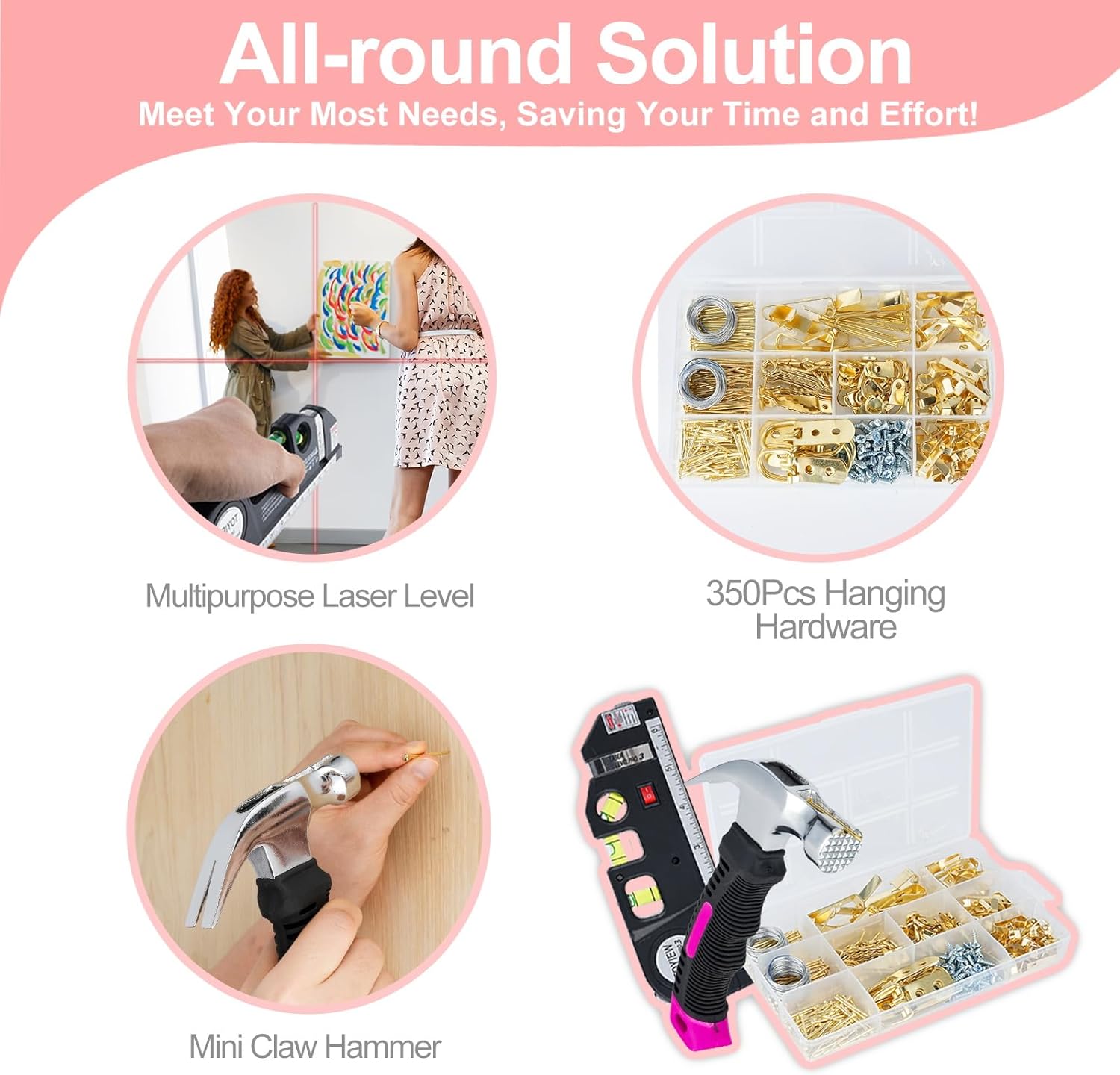 TOYIEW 33Pcs Pink Staple Gun Tool Set and 352Pcs Picture Hanging Kit