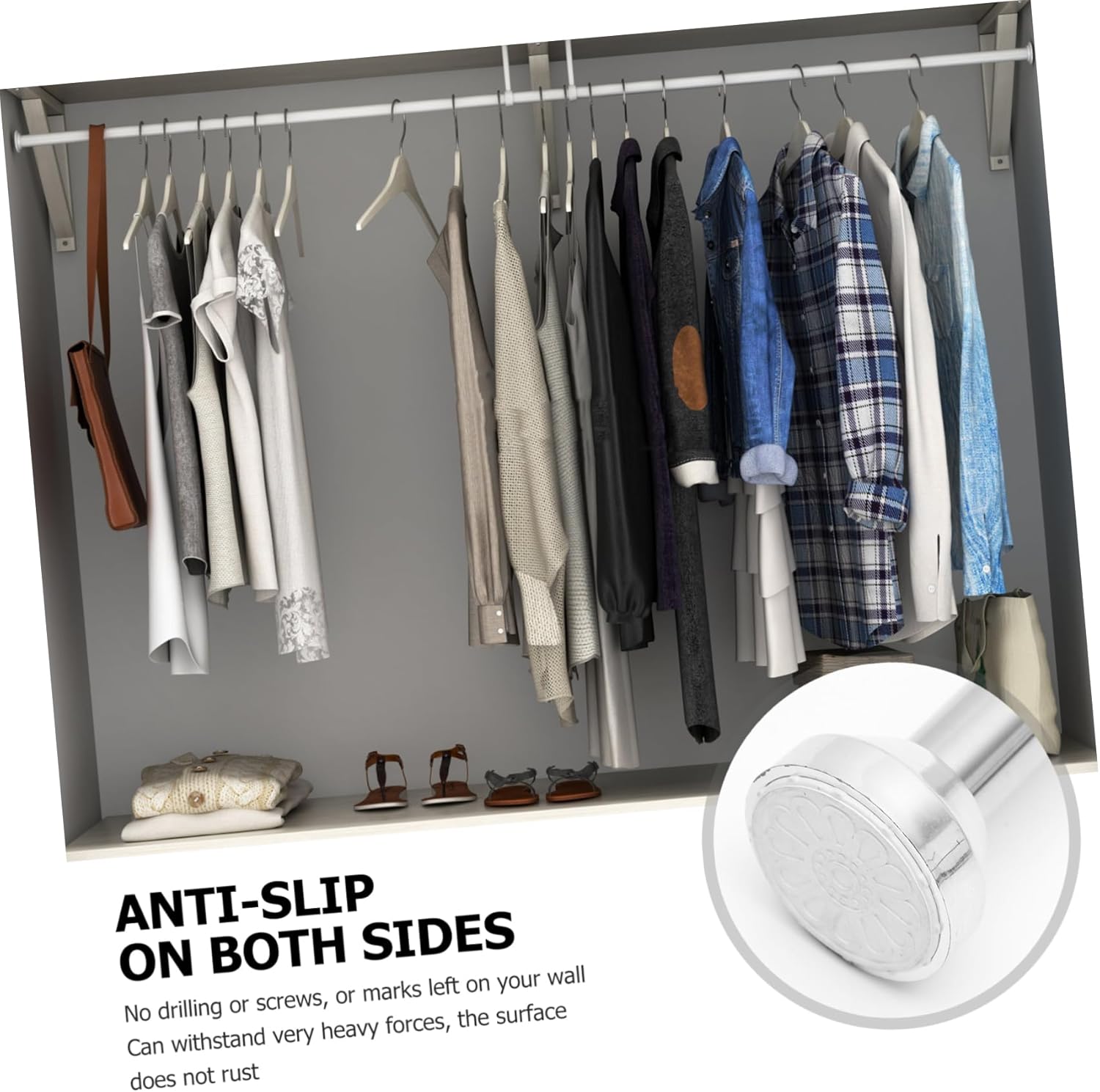 Package Include 1 x rod Characteristics - Color: Silver Wardrobe Rods. - Material: Stainless steel Spring Tension Rod. - Size: 68.00X5.00X5.00cm/26.72X1.97X1.97in Seamless Adjustable Rods - Made from stainless steel, non-slip, no drilling, no rust, never , , easy to clean, no need to spray before use No Drilling Rod. - Using spring loaded tension, our product is adjustable to fit your shower or bathtub Bathroom Hanging Rod. - You can use it with a shower curtain rod at the door for privacy or with a curtains at the bedroom window for shading Telescopic Stainless Steel Rods. - This shower curtain rods can be used in many areas in your house, such as bathrooms, kitchens, bedrooms, and balconies Extendable Adjustable Rods.Goods InformationTelescopic Stainless Steel Rods In addition, it was as efficient as the shower curtain rod that required drilling holes in the wall.Wardrobe Rods It was not until I encountered this shower curtain rod that was simply very convenient to install.Spring Tension Rod In the past, when installing old-fashioned shower curtain rods, I needed to use an electric drill to make holes in the wall so I could insert a locked shower curtain frame.No Drilling Rod It can be used to more pound and will still not bend, while the end caps will not move.Bathroom Hanging Rod Furthermore, the two end caps will lock the rod tightly onto the wall.Seamless Adjustable Rods Dust was strewn all throughout the bathroom floor, and I also had to clean up the bathroom.Extendable Adjustable Rods It only required me to slant it 5 degrees and the head slightly to adjust the location