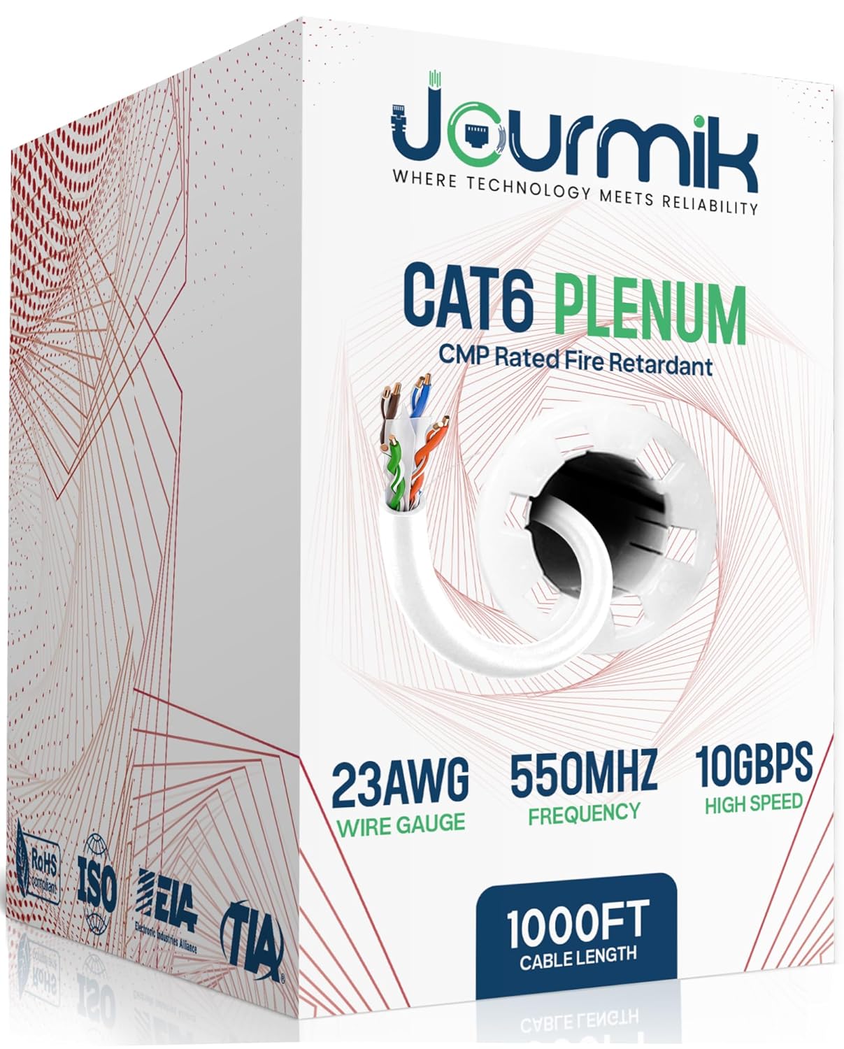 Jourmik | CAT6 Plenum Ethernet Cable 1000ft | CMP Rated Fire Resistance | 23AWG, 550MHz, 10Gbps UTP 4Pairs High-Speed Network Cable for Commercial & Residential Networking | Easy Pull Box | Black