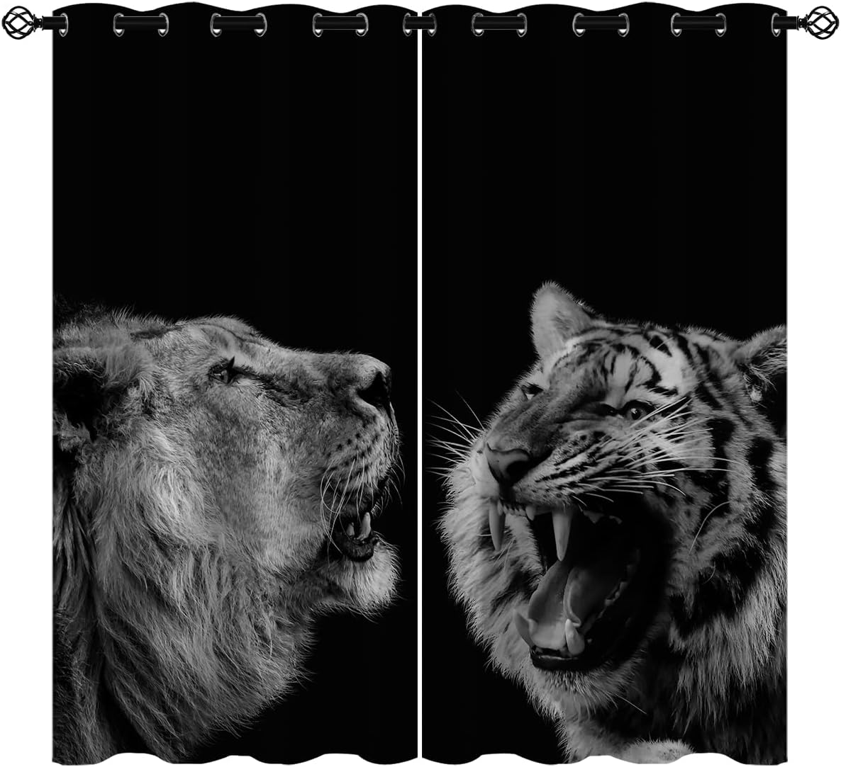 These print curtains are perfect for Living room, bedroom, kids room, kitchen, yard, patio, parlor, sliding door with Tiger,Animal Zoo Forest Family Jungle Winter Snow pattern.- Unique design:· Save energy costs by insulating against heat and cold.· Reduce noises from busy streets and high-traffic areas.· Protect furniture from sun damage and fading.· Provides complete privacy when needed· Perfect for any bedroom, office kids room and living room.- Package Included:· Blackout window curtains 2 Pcs set ( two panels).- Material:· Our Blackout Curtain Liners are crafted from a durable soft and thick triple weaved blackout fabric which can block out sunlight and UV rays. The darker color of the fabric, the more light it can block.- Easy Care Instructions:· Machine washable in cold water· Do not bleach.· tumble dry on low· low temperature ironing- Notes:· For your curtains to be more perfect, please choose a size 5-10 Inch larger than the actual window width.· here may be slight differences in colors on different displays. If you have any questions about the product, please feel free to contact us.